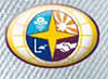 Globinho oval, contendo um círculo com as quatro classes, em suas respectivas cores, com uma estrela de quatro pontas ao